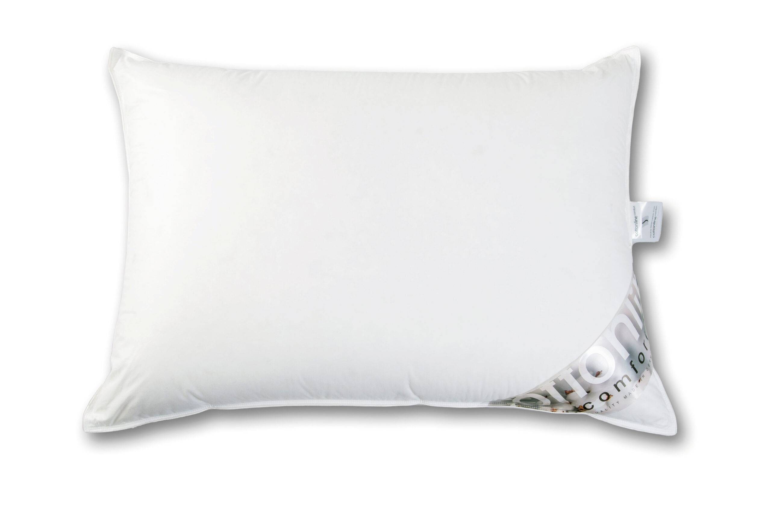 Pūkinė pagalvė Comfort 50x70 cm Užpildas 90 % žąsų pūkas 10 % žąsų plunksnos Užpildams naudojamas rankomis surinktas žąsų pūkas ir plunksnos. Pagalvės siuvamos rankomis. Turime trijų minkštumo lygių: