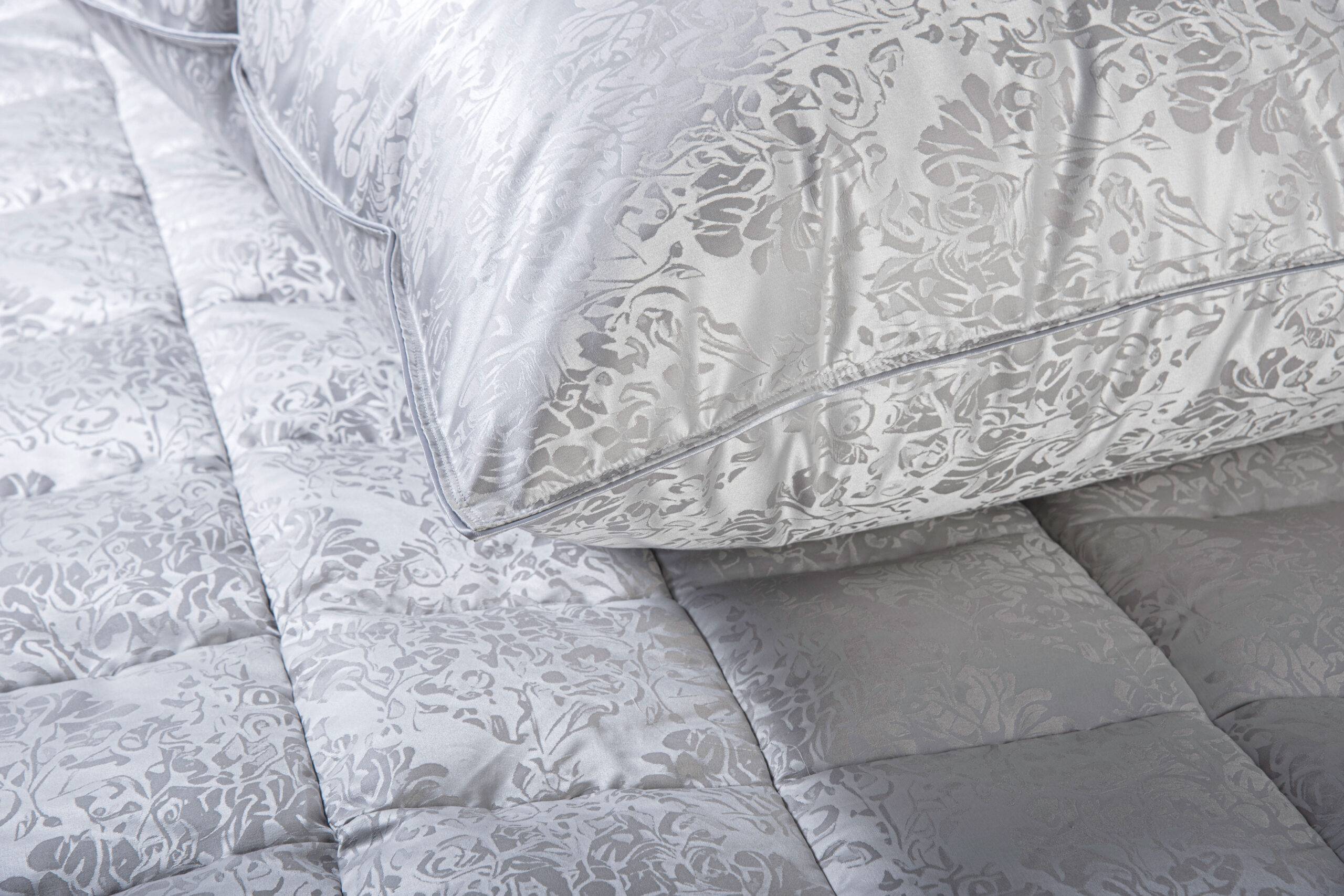 Pagalvės viršaus audinį galite rinktis iš gausybės itin kokybiškų, pūkui nepralaidžių žakardinio šilko audinių.