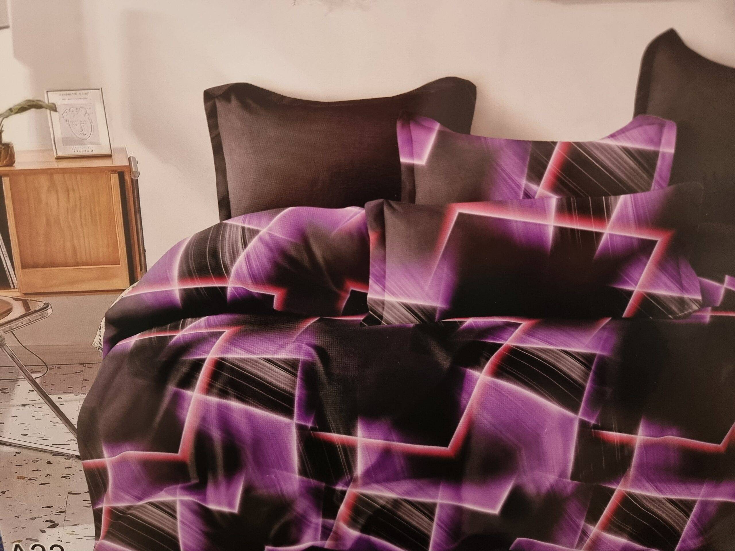 Dvigulis patalynės komplektas 4 dalių Užvalkalas antklodei 220×200 cm arba 200x200 cm Užvalkalas pagalvei 70×80 cm – 2 vnt Paklodė 200x225 cm Užvalkalai užsegami užtrauktukais Audinys 100 % mikropluoštas Piešinys atitinka nuotrauką. Mikropluoštas yra sintetinis audinys. Tai plonas, bet tvirtas audinys. Nedažo, “nesiburbuliuoja”. Pagaminta Lenkijoje. Skalbti iki 40 laipsnių temperatūroje, išverstą į blogąją pusę