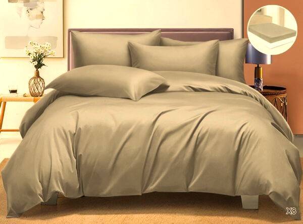 Dvigulis patalynės komplektas + paklodė su guma Beige