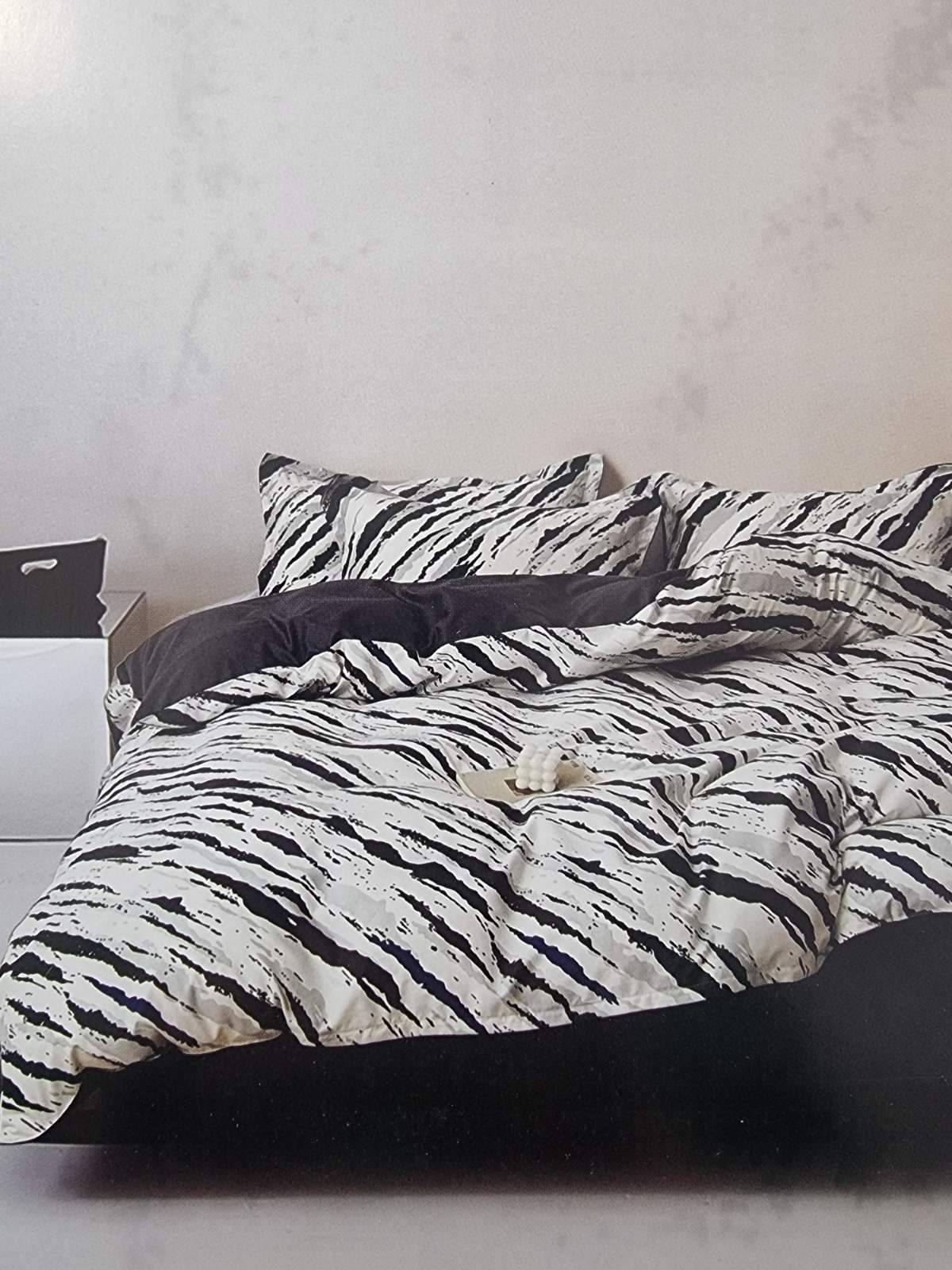 Dvigulis patalynės komplektas + paklodė su guma ( H15) Dvigulis patalynės komplektas 4 dalių DVIPUSIS Užvalkalas antklodei 220×200 cm Užvalkalas pagalvei 70×80 cm – 2 vnt Paklodė 200x220 cm su guma, tinkama 160x200 cm arba 180x200 cm čiužiniams. Užvalkalai užsegami užtrauktukais Audinys 100 % mikropluoštas Atspalvis gali šiek tiek skirtis nuo matomo nuotraukoje Mikropluoštas yra sintetinis audinys. Tai plonas, bet tvirtas audinys. Nedažo, “nesiburbuliuoja”. Pagaminta Lenkijoje. Skalbti iki 40 laipsnių temperatūroje, išverstą į blogąją pusę