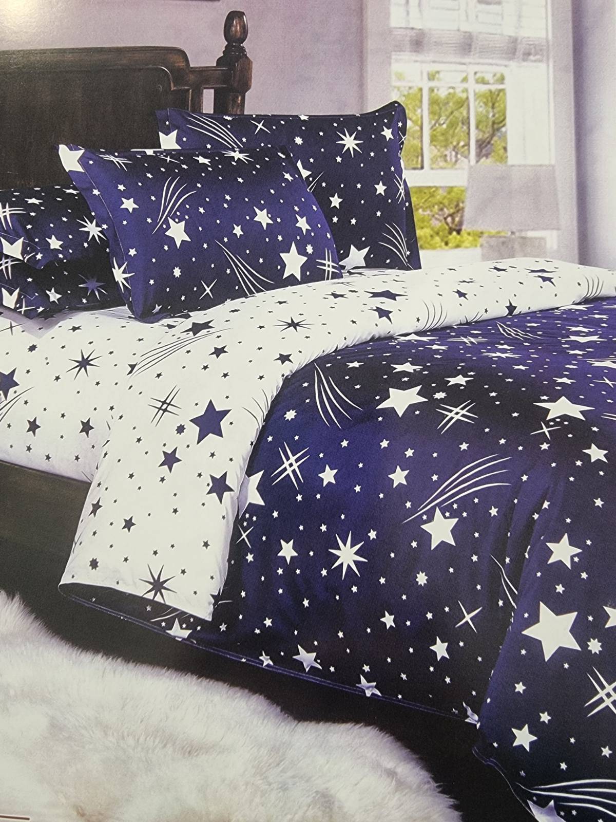 Dvigulis patalynės komplektas 4 dalių Užvalkalas antklodei 220×200 cm arba 200x200 cm Užvalkalas pagalvei 70×80 cm – 2 vnt Paklodė 200x225 cm Užvalkalai užsegami užtrauktukais Audinys 100 % mikropluoštas Piešinys atitinka nuotrauką. Mikropluoštas yra sintetinis audinys. Tai plonas, bet tvirtas audinys. Nedažo, “nesiburbuliuoja”. Pagaminta Lenkijoje. Skalbti iki 40 laipsnių temperatūroje, išverstą į blogąją pusę