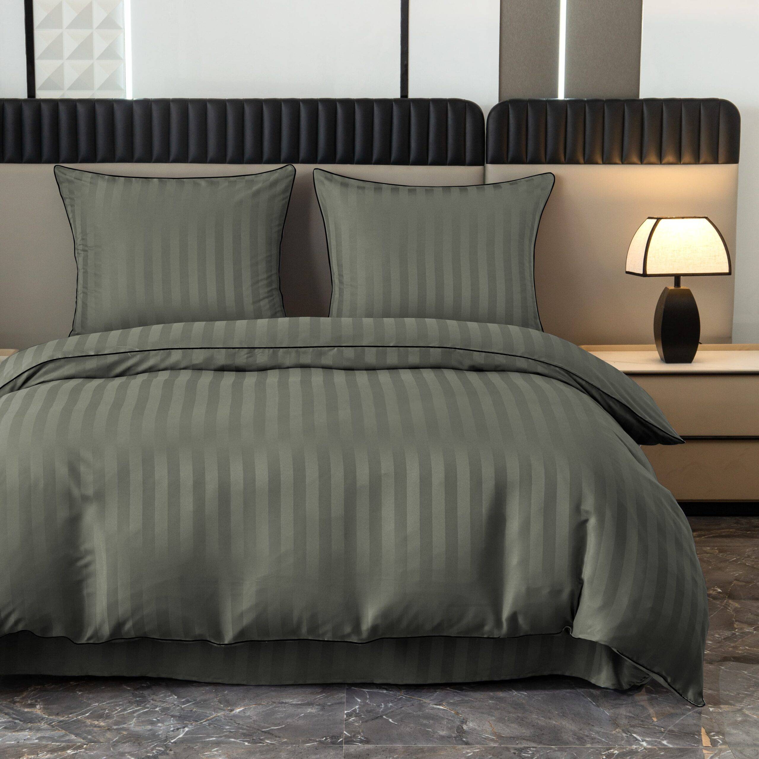 Dvigulis viešbučio stiliaus patalynės komplektas FDL 3176 – elegantiškas ir praktiškas pasirinkimas ieškantiems tvarkingos, klasikinės miegamojo estetikos. Subtilus juostuotas raštas suteikia prabangos pojūtį ir primena viešbučiams būdingą švaros bei komforto standartą.