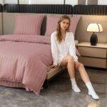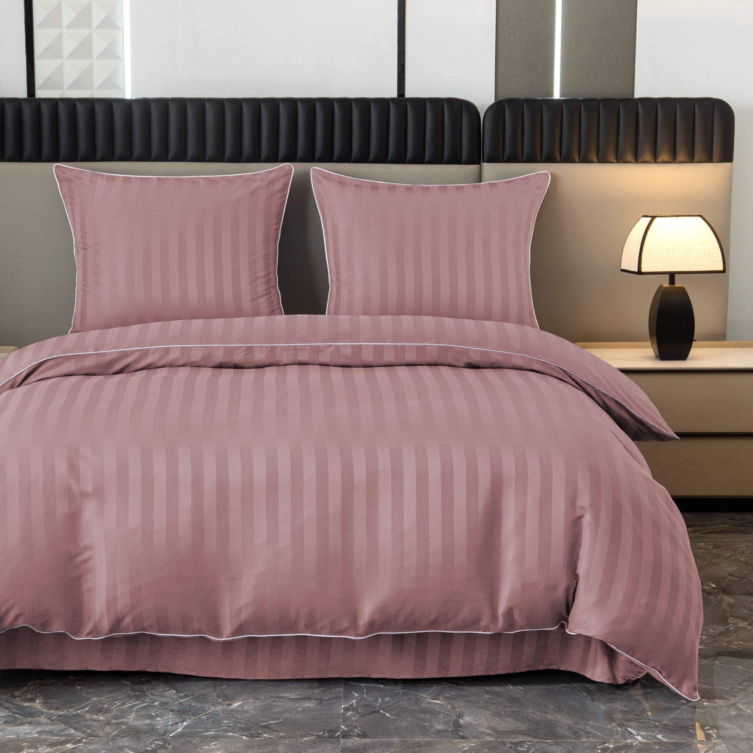 Dvigulis viešbučio stiliaus patalynės komplektas FDL 3177– elegantiškas ir praktiškas pasirinkimas ieškantiems tvarkingos, klasikinės miegamojo estetikos. Subtilus juostuotas raštas suteikia prabangos pojūtį ir primena viešbučiams būdingą švaros bei komforto standartą.