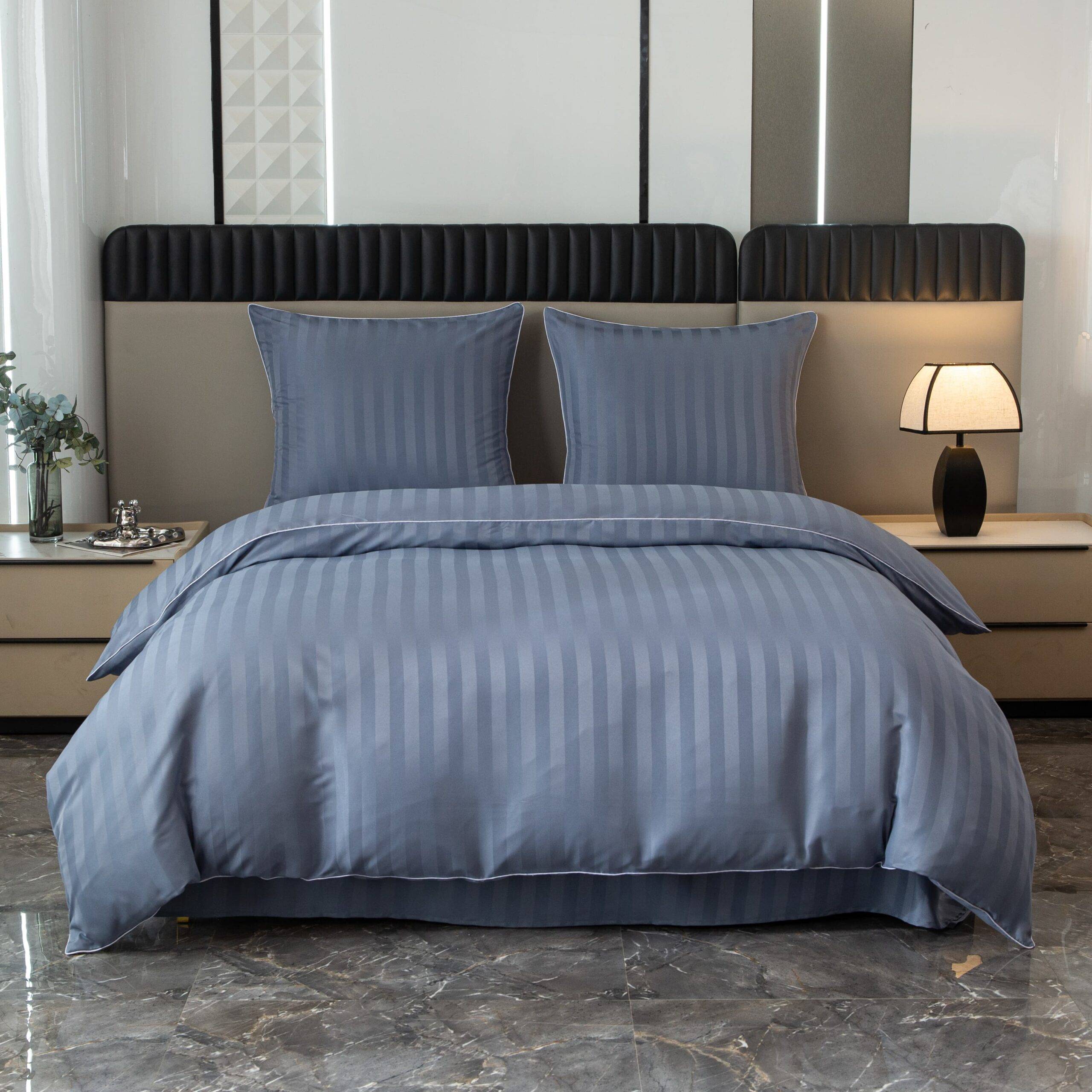 Dvigulis viešbučio stiliaus patalynės komplektas FDL 3179   – elegantiškas ir praktiškas pasirinkimas ieškantiems tvarkingos, klasikinės miegamojo estetikos. Subtilus juostuotas raštas suteikia prabangos pojūtį ir primena viešbučiams būdingą švaros bei komforto standartą.