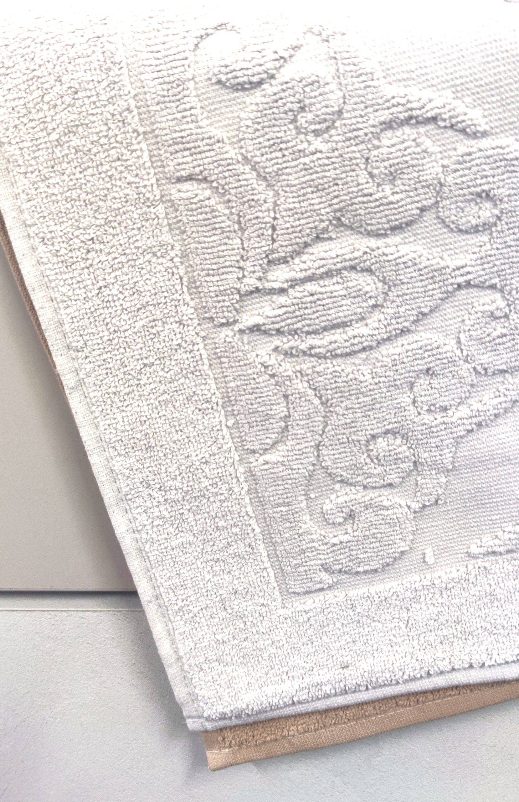 Frotinis rankšluostis–kilimėlis voniai 50×70 cm ne tik funkcionalus, bet ir dekoratyvus – subtilus raštas suteikia vonios erdvei jaukumo ir prabangos pojūtį. Idealiai tinka namams, svečių voniai ar kaip dovanų idėja.