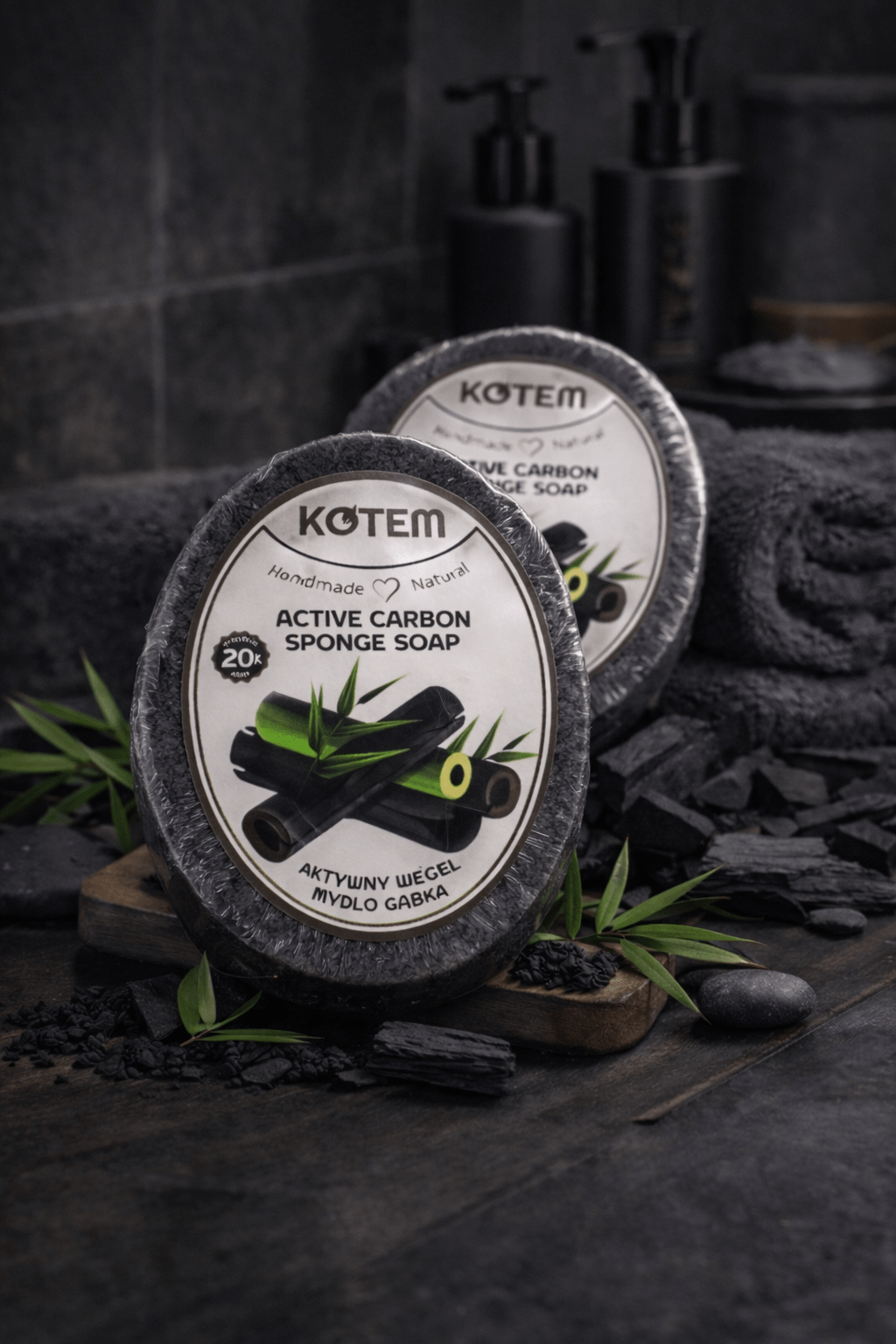 - Muilas-kempinė su aktyvinta anglimi: Detoksikuoja ir giliai valo.