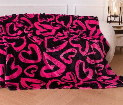 Pledas pliušinis 160×200 cm ( Širdelės fucsia)