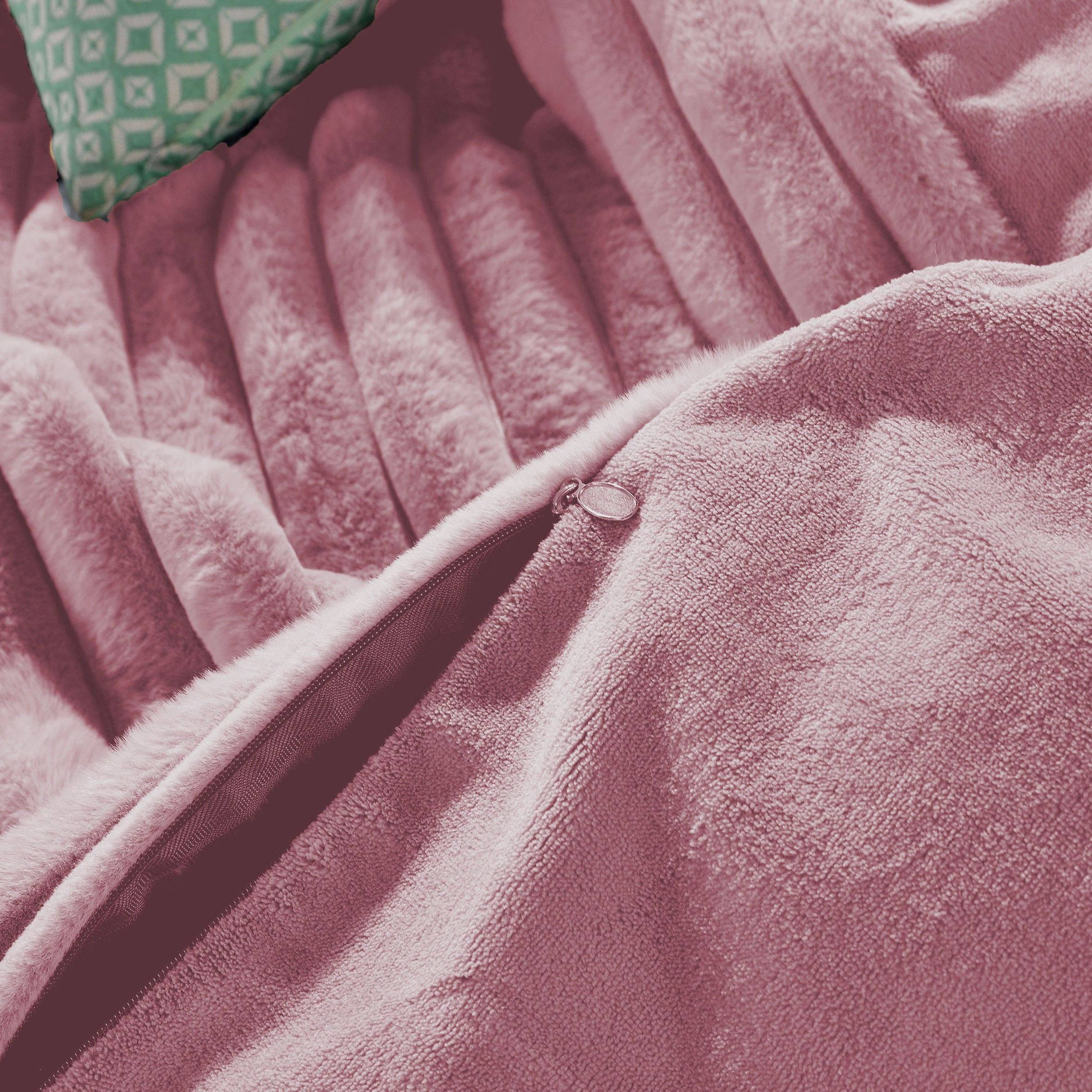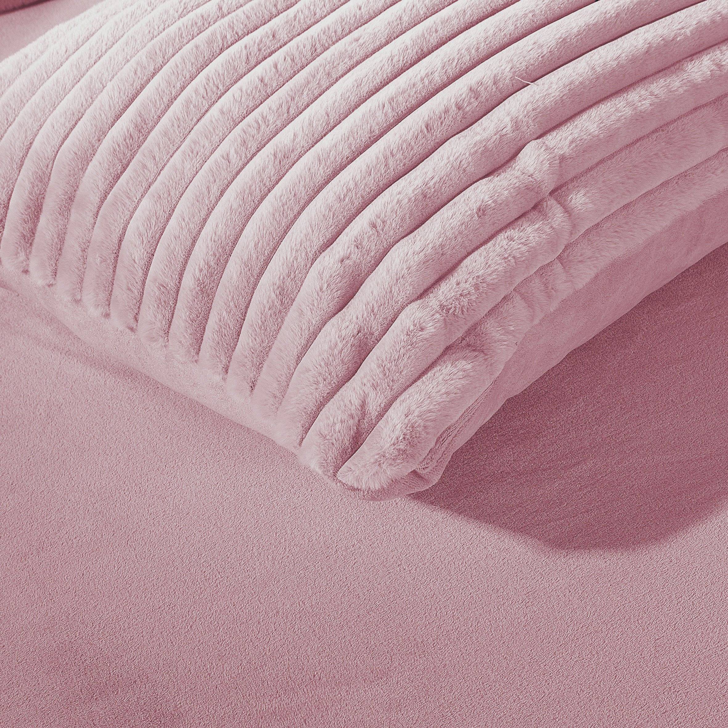 Komplekto viena pusė dekoruota iškiliom detalėm ir yra ilgesnio puraus plauko, o kita pusė kaip ir paklodė lygi. Itin švelnus, minkštas ir šiltas patalynės komplektas.