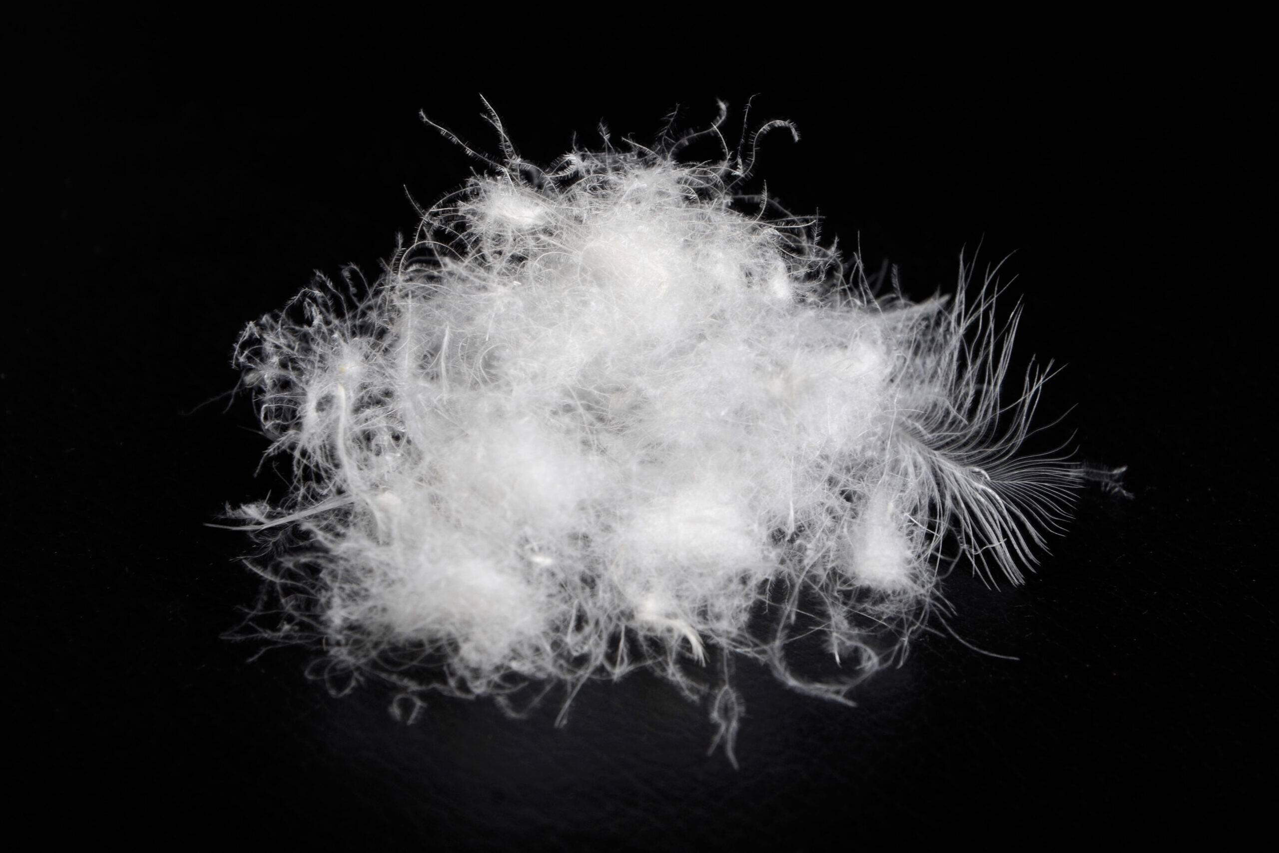 Pūkas naudojamas baltų žąsų 1 klasės (EN12934) Žaliava surenkama nepakenkiant paukščiams.