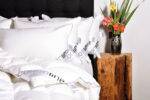 Užpildams naudojamas rankomis surinktas žąsų pūkas ir plunksnos. Pagalvės siuvamos rankomis.