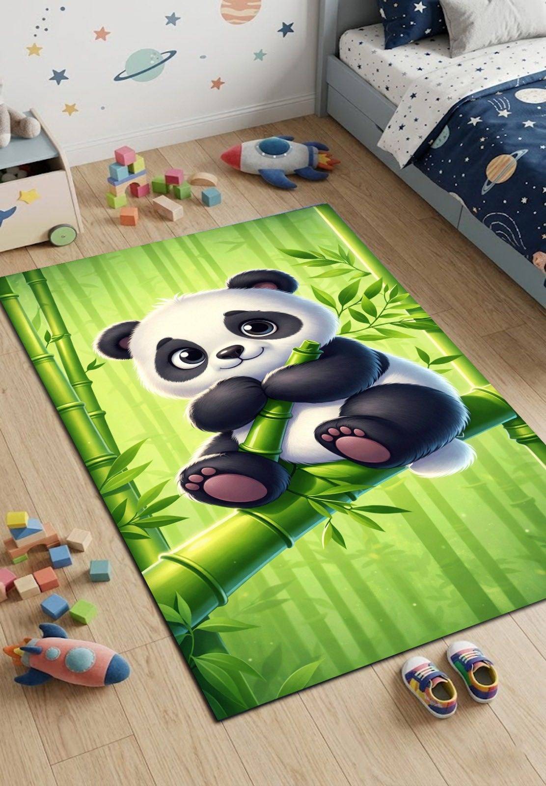 Vaikiškas neslystantis kilimas 80×150 cm Panda su bambuku