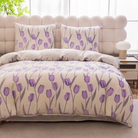 Viengulis 160x200cm spausto rašto pliušinis patalynės komplektas 4 dalių ( SHL 3246 )
