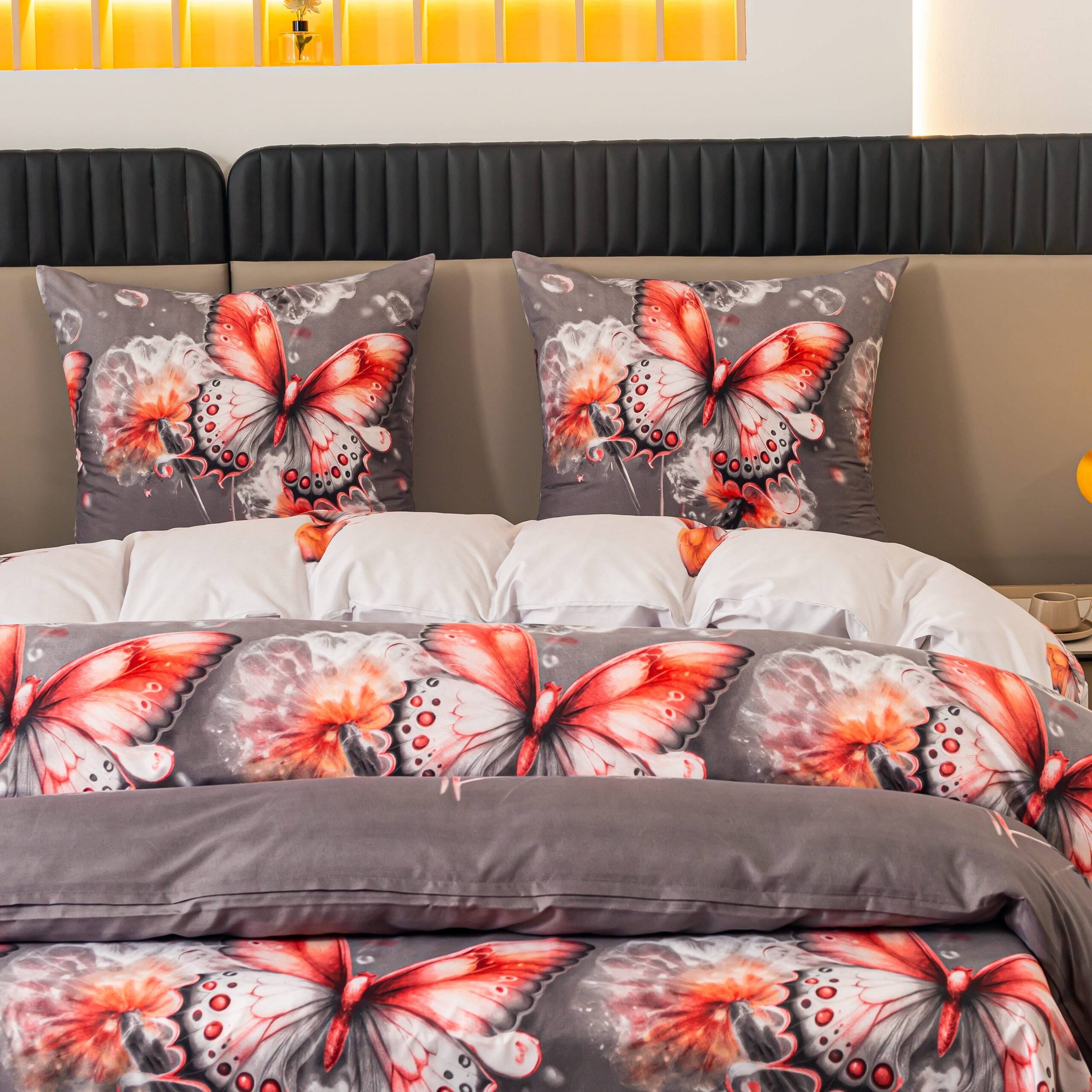 Dvigulis patalynės komplektas 4 dalių Užvalkalas antklodei 220×200 cm Užvalkalas pagalvei 70×80 cm – 2 vnt Paklodė 200x225 cm Užvalkalai užsegami užtrauktukais Audinys 100 % mikropluoštas Piešinys atitinka nuotrauką. Mikropluoštas yra sintetinis audinys. Tai plonas, bet tvirtas audinys. Nedažo, “nesiburbuliuoja”. Pagaminta Lenkijoje. Skalbti iki 40 laipsnių temperatūroje, išverstą į blogąją pusę