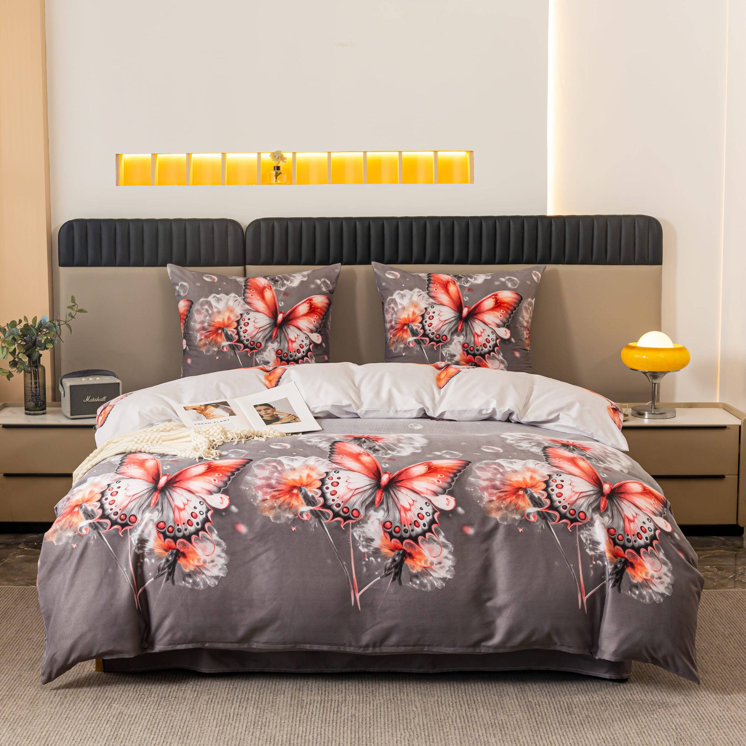 Dvigulis patalynės komplektas 4 dalių Užvalkalas antklodei 220×200 cm arba 200x200 cm Užvalkalas pagalvei 70×80 cm – 2 vnt Paklodė 200x225 cm Užvalkalai užsegami užtrauktukais Audinys 100 % mikropluoštas Piešinys atitinka nuotrauką. Mikropluoštas yra sintetinis audinys. Tai plonas, bet tvirtas audinys. Nedažo, “nesiburbuliuoja”. Pagaminta Lenkijoje. Skalbti iki 40 laipsnių temperatūroje, išverstą į blogąją pusę