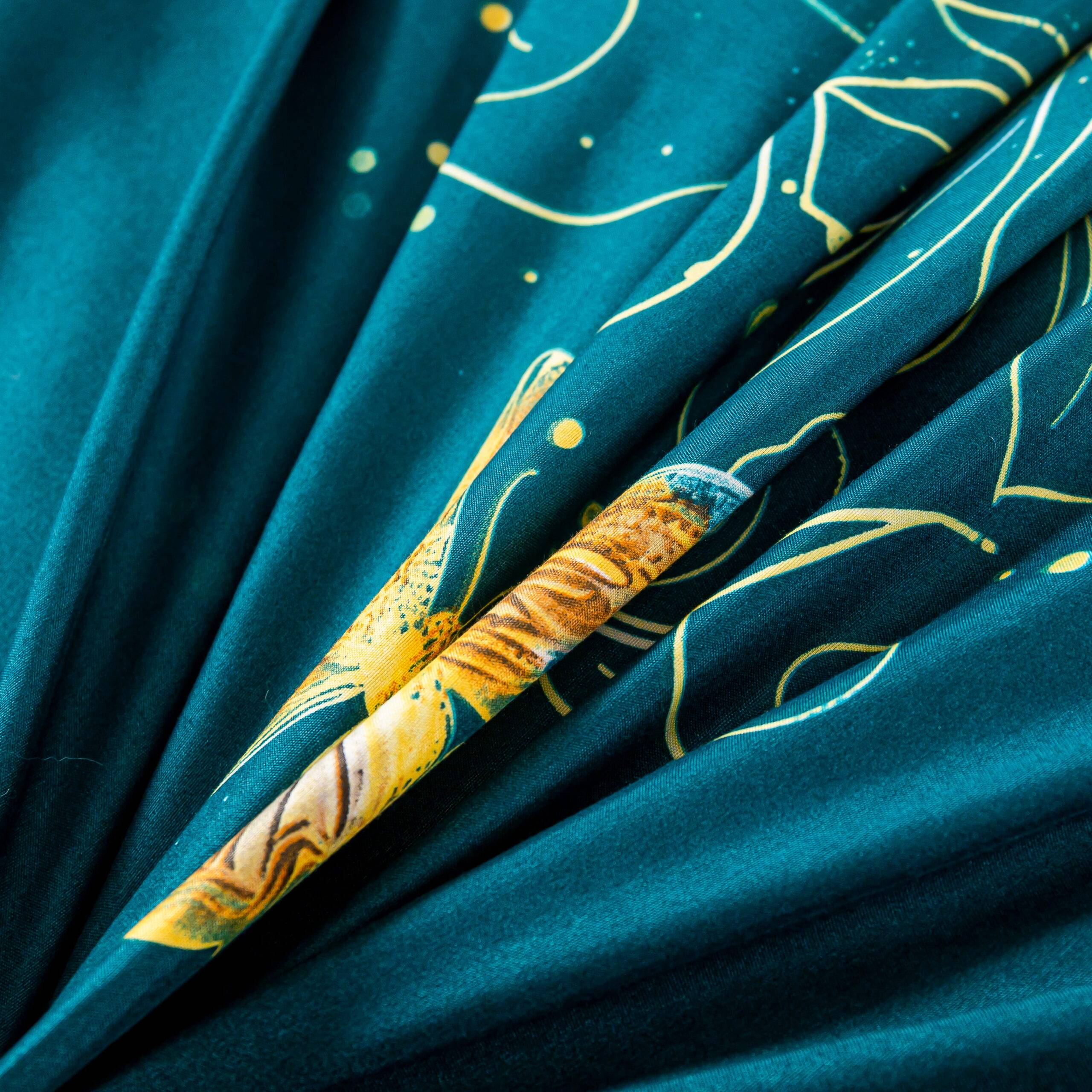 Dvigulis patalynės komplektas 4 dalių Užvalkalas antklodei 220×200 cm arba 200x200 cm Užvalkalas pagalvei 70×80 cm – 2 vnt Paklodė 200x225 cm Užvalkalai užsegami užtrauktukais Audinys 100 % mikropluoštas Piešinys atitinka nuotrauką. Mikropluoštas yra sintetinis audinys. Tai plonas, bet tvirtas audinys. Nedažo, “nesiburbuliuoja”. Pagaminta Lenkijoje. Skalbti iki 40 laipsnių temperatūroje, išverstą į blogąją pusę