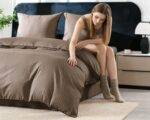 Mako satinas – tai aukščiausios kokybės medvilnės audinys, audžiamas iš ilgapluoštės medvilnės siūlų. Dėl šios priežasties audinys tampa itin tankus, švelnus ir malonus prisilietimui, o jo paviršius pasižymi subtiliu, elegantišku blizgesiu. Ši medžiaga puikiai praleidžia orą, leidžia odai kvėpuoti ir užtikrina komfortišką miegą visais metų laikais – tiek šiltuoju, tiek šaltuoju sezonu.