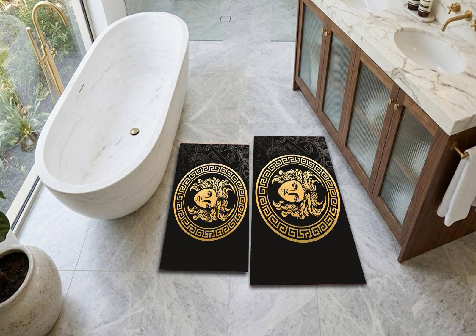 - Dydžiai: 60 x 100 cm ir 50 x 60 cm — idealiai tinka tiek prie vonios, tiek prie praustuvo.