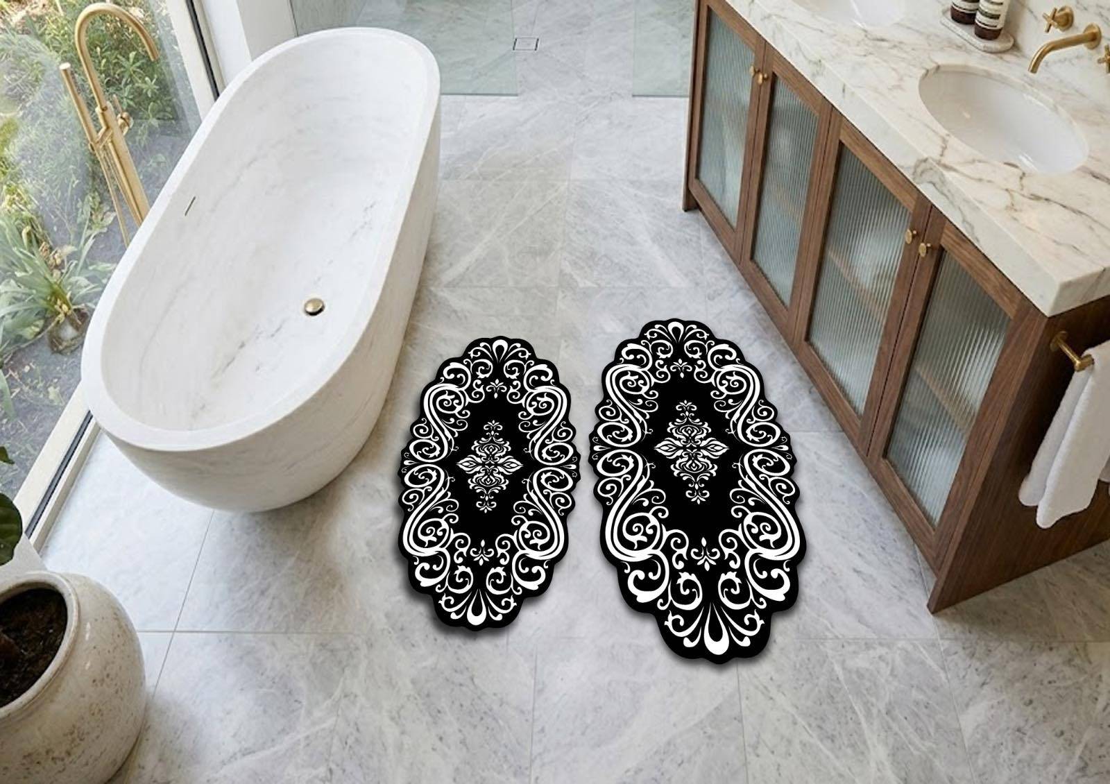 • Dydžiai: 60 x 100 cm ir 50 x 60 cm — idealiai tinka tiek prie vonios, tiek prie praustuvo.