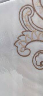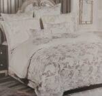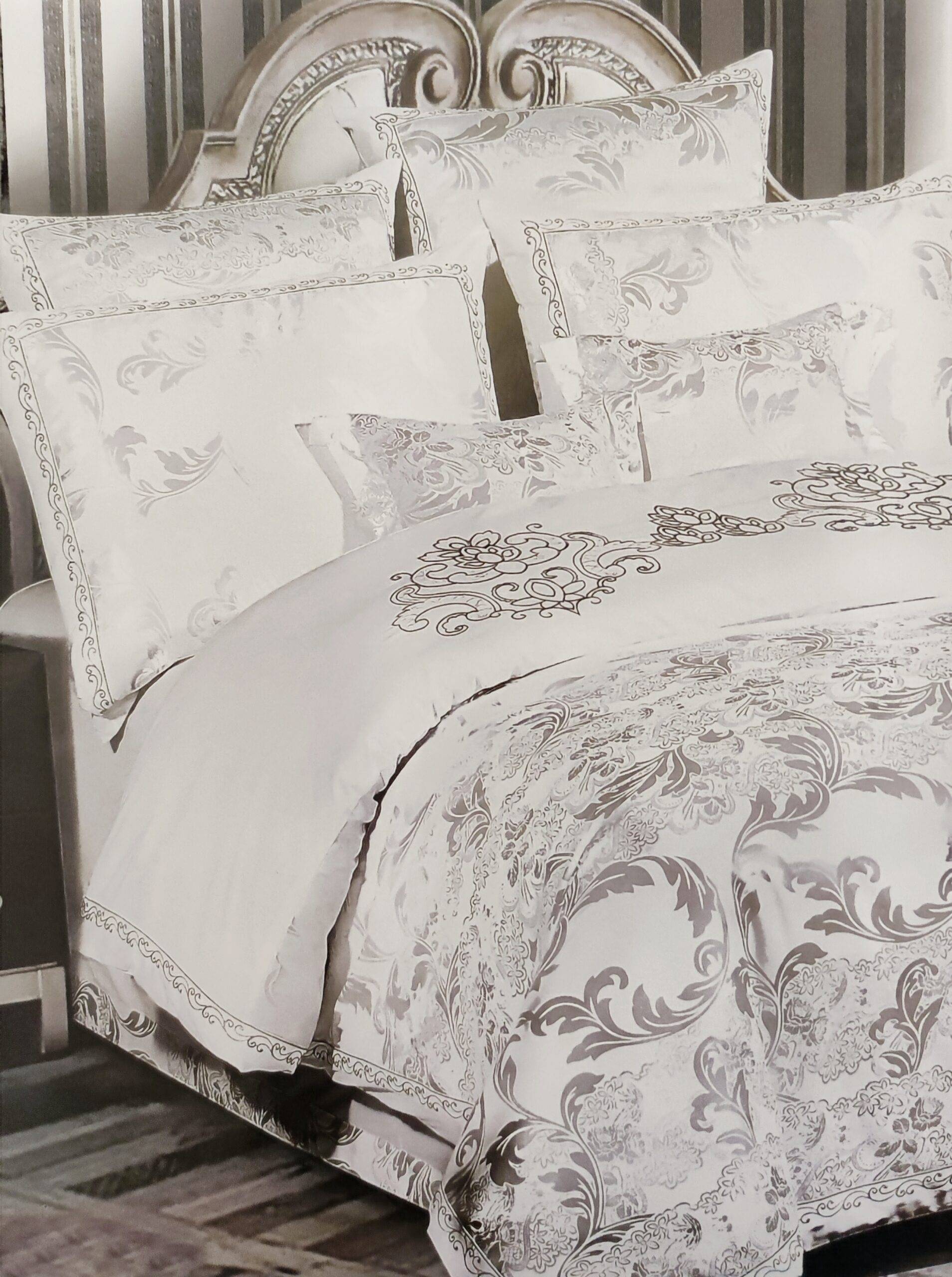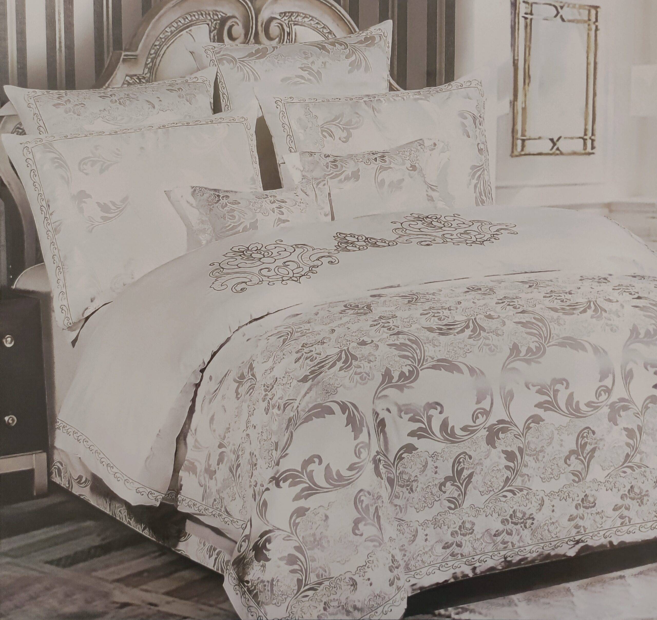 Prabangus 100 % medvilnės satino audimo patalynės komplektas. Apatinė dalis medvilninė, viršutinė žakardinė iš atlasinio ir medvilninio siūlų.