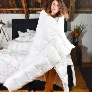 Benedica“ vilnos antklodė 160×200 cm – prabangaus komforto pasirinkimas jūsų miegui. Stora ir sunki antklodė suteikia malonų „apkabinimo“ jausmą, o dvigubas susiuvimas užtikrina ilgaamžiškumą ir nepriekaištingą kokybę. Natūrali vilna palaiko optimalią temperatūrą, todėl miegas bus šiltas, jaukus ir ramus.